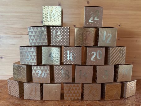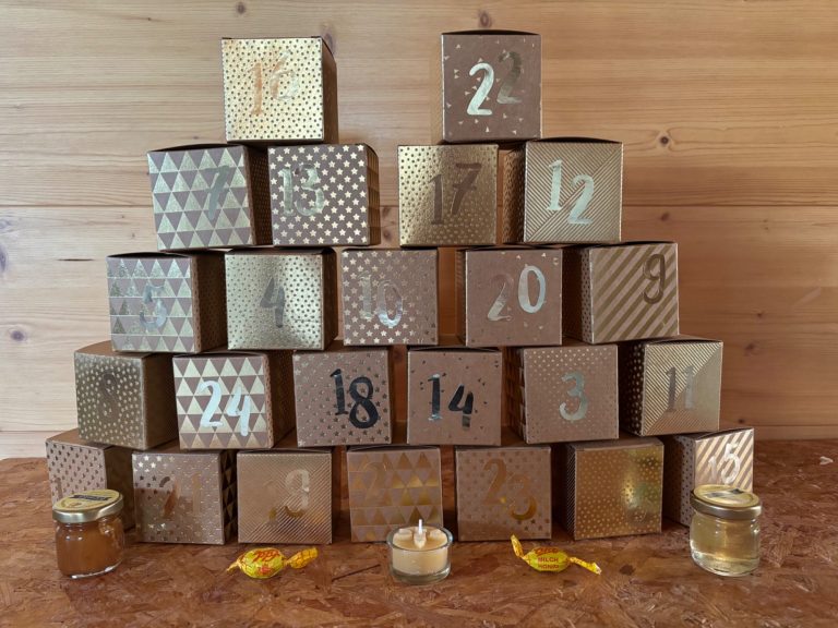 24 einzelne wunderschöne Schachteln gefüllt mit hochwertigen Produkten aus unserer Imkerei.