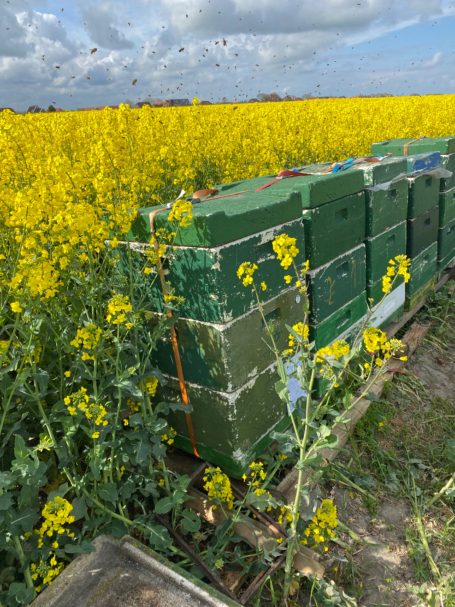 Hier inmitten der Rapsfelder, umgeben von den vielen Weißdornhecken sammeln unsere Bienen diese unvergleichliche Mischung .